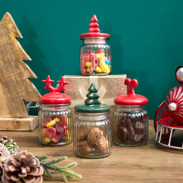 Ce bocal sera idéal pour conserver vos meilleures confiseries. Transparent, surveillez la contenance en un clin d'oeil ! Le couvercle en céramique et en forme de sapin permettra à votre bocal de parfaitement se fondre dans votre décoration de Noël !