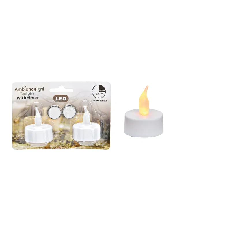 Bougies à chauffe-plat Set LED avec minuterie CR2032 incl. set de 2, en plastique blanc Ø3,8cmx1,8cm