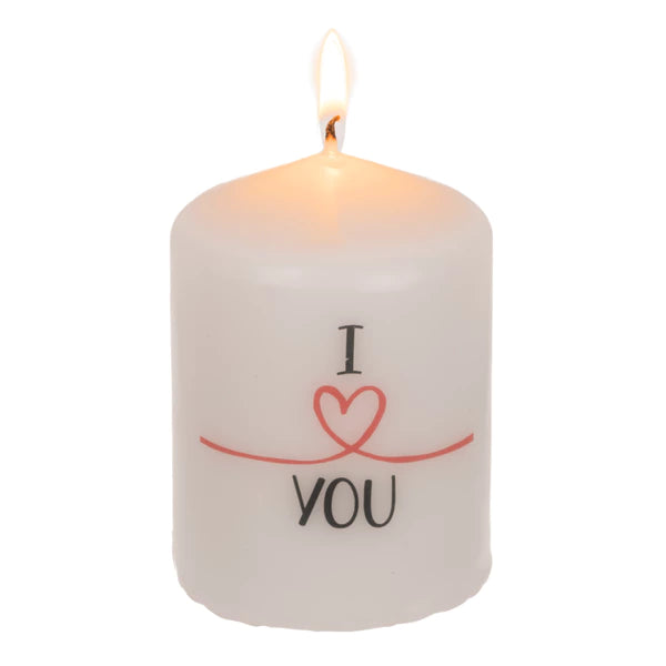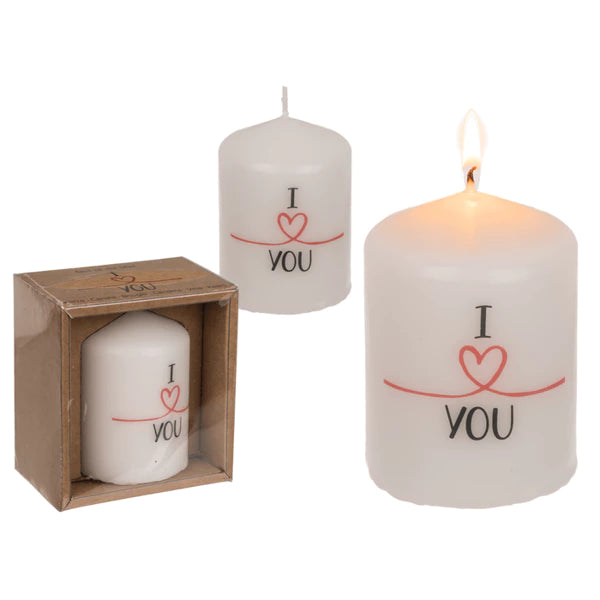 Bougie pilier, je t'aime, environ 6 x 8 cm, dans un emballage en papier kraft