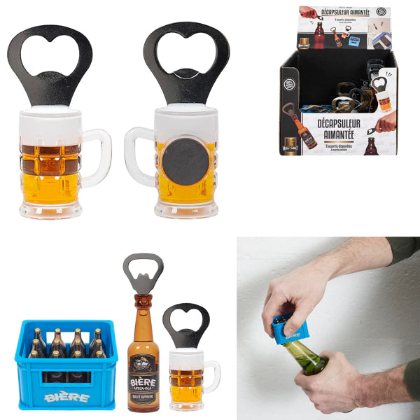 Vous recherchez un accessoire pratique et original pour vos soirées entre amis ou pour offrir en cadeau ? Nos décapsuleurs en forme de bière sont la solution idéale ! Conçus avec soin, ils combinent design ludique et efficacité à toute épreuve. Faciles à utiliser et durables, ils apporteront une ambiance festive à chaque ouverture de bouteille.