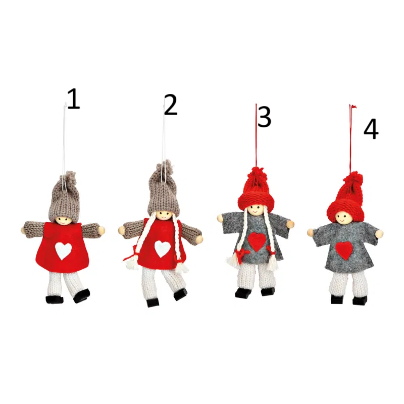 Pendentif Noël Enfant d'hiver en textile, quadruple, rouge/gris (L/H/P) 7x12x3cm